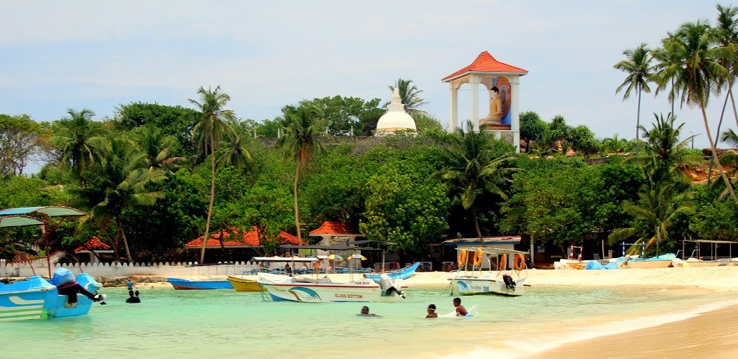 Nilaveli Beach is a broad, sandy beach, lined with palm trees and dotted with fishermen's boats. Located on the northeast part of Sri Lanka, it's a 30-minute drive from the city of Trincomalee. If the isolation of Nilaveli isn't enough, you can take a boat to Pigeon Island, about a half-mile off the coast. This tiny island has calm beaches with gentle surf due to its own small reef. Although the beach at Nilaveli is large, it is popular with both locals and tourists.