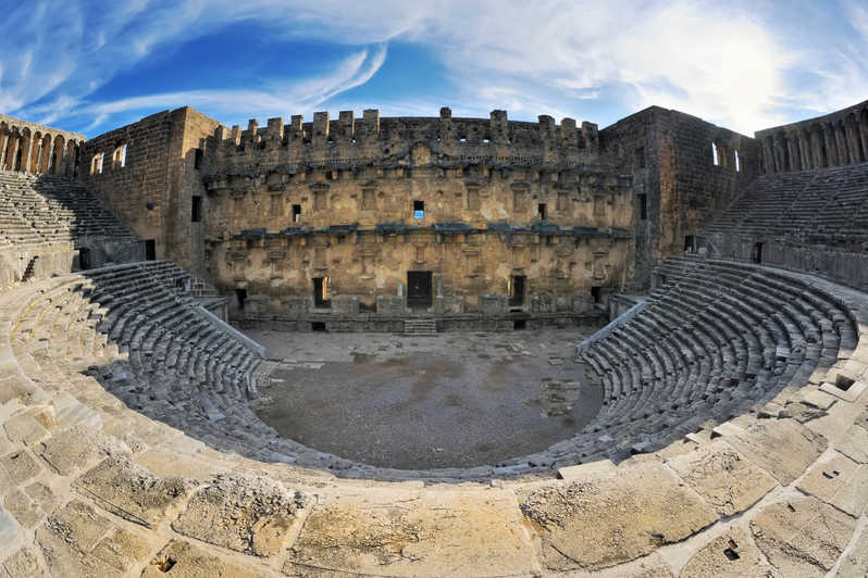 Just south of Antalya, the jaw-dropping mammoth bulk of the Roman Theater of Aspendos celebrates the pomp and ceremony of Marcus Aurelius' rule. Considered the finest surviving example of a classical age theater still standing in the world, it is one of antiquity's star attractions.